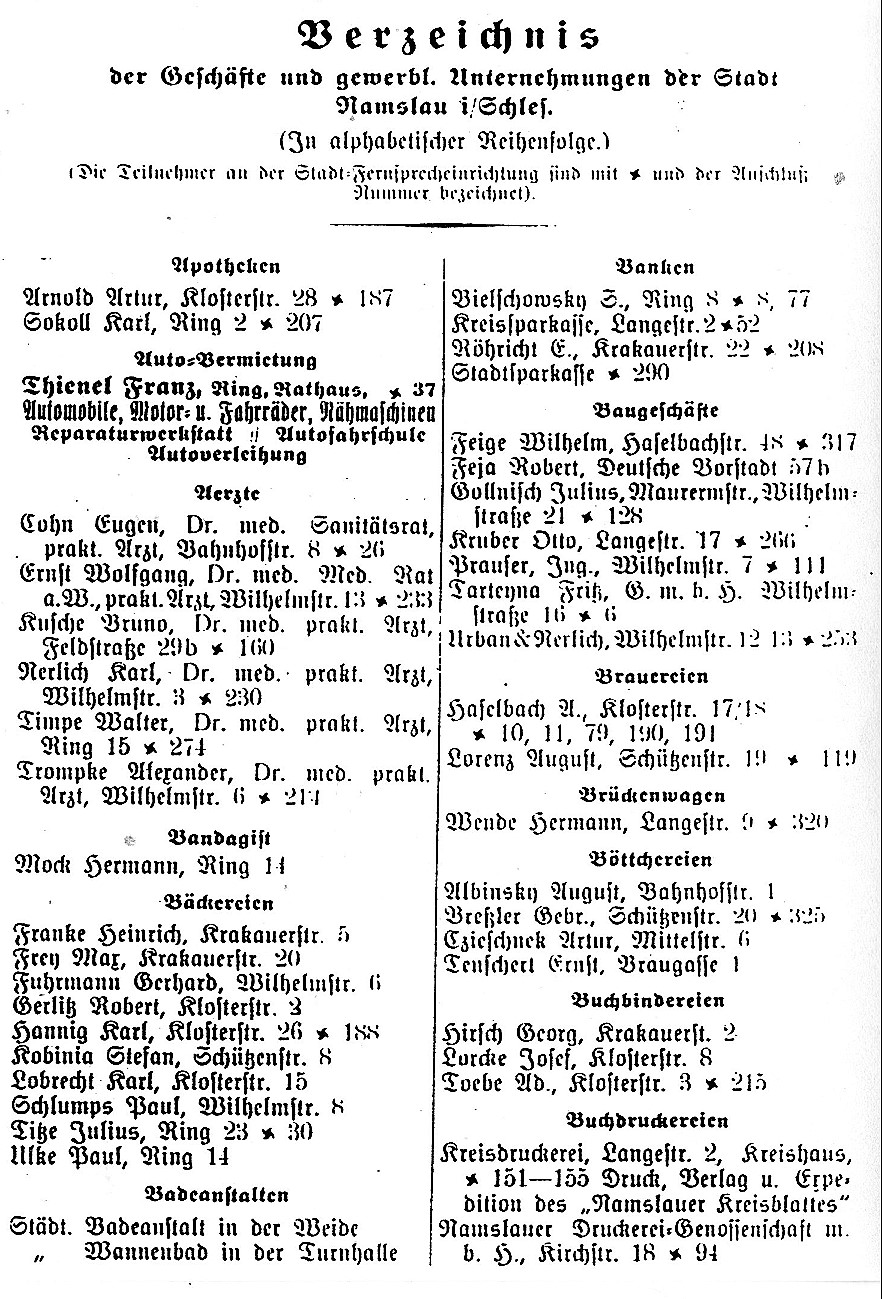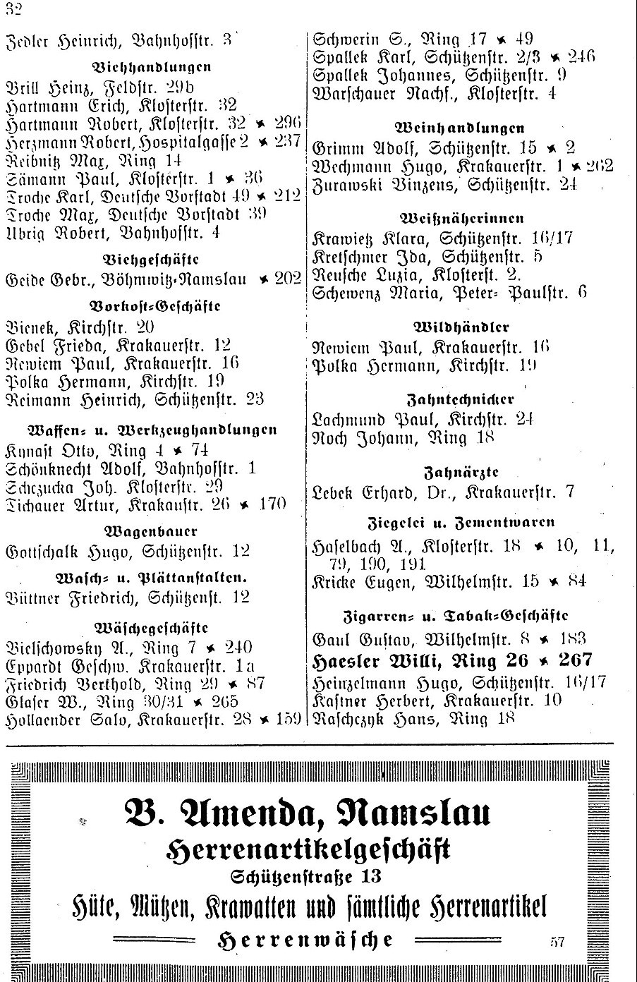 Weihnhandlungen, Weißnäherinnen, Wildhändler, Zahntechniker, Zahnärzte,Ziegelei-