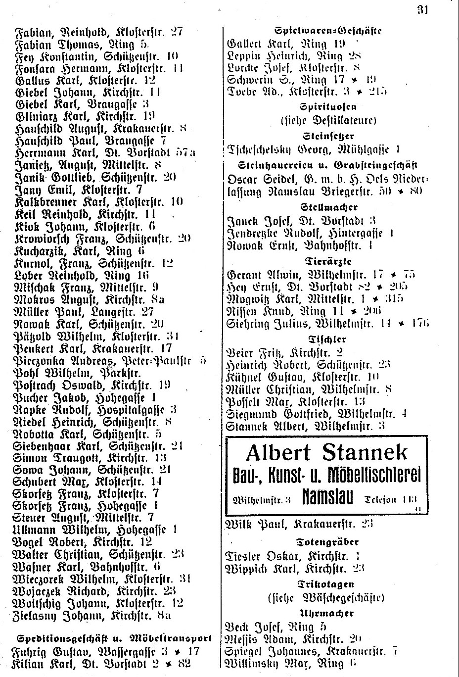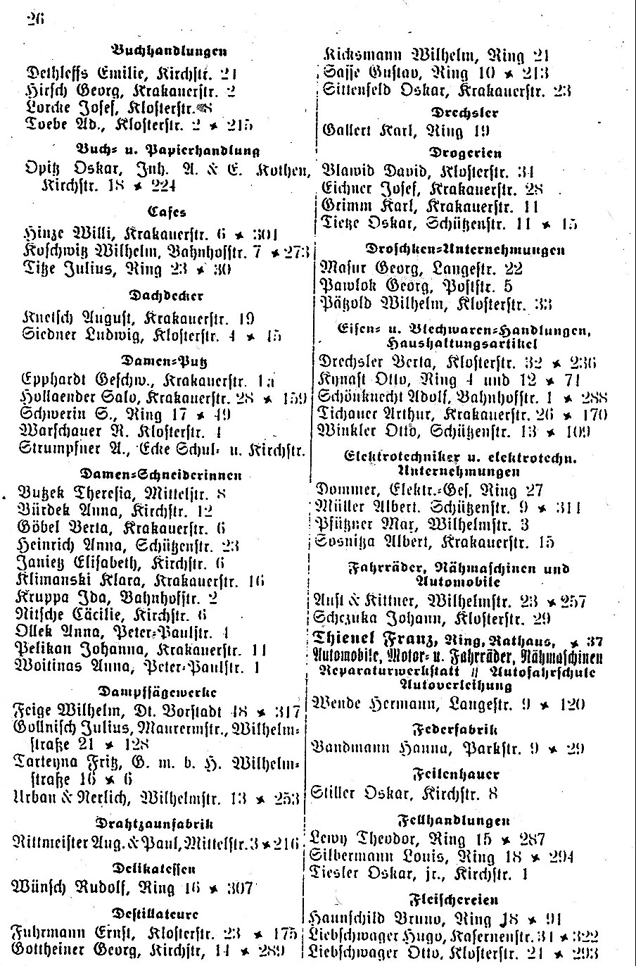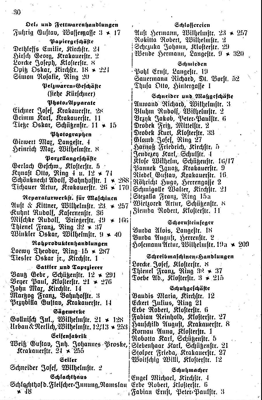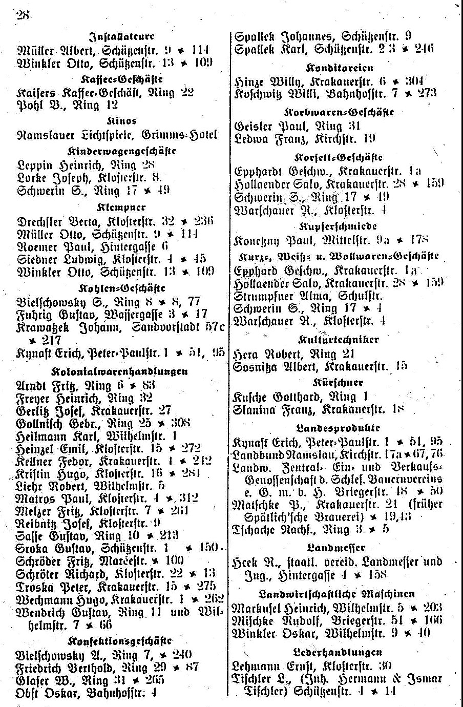 Klmpner, Kohlegeschäfte, Kolonialwarenhandlungen, Konfektionsgeschäfte, Konditoreien,