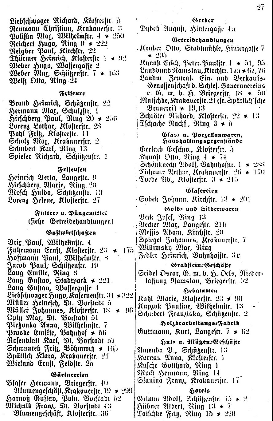Gastwirtschaften, Gärtnereien, Gerber, Getreidehandlungen, Glas- und Porzellanwaren