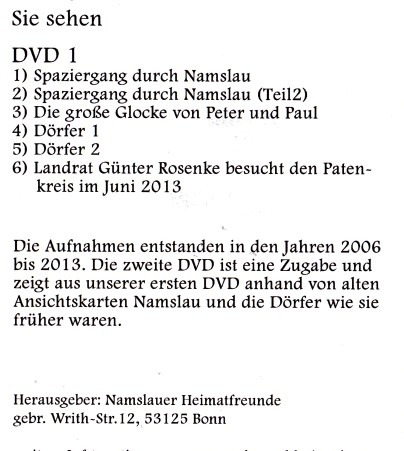 Namslau "58 Jahre Treue zur Heimat" - gestern und heute " eine Reise durch Stadt und Land bei klassischer Musik abspielbar über DVD-Player am Fernsehgerät