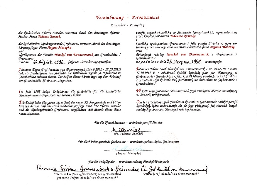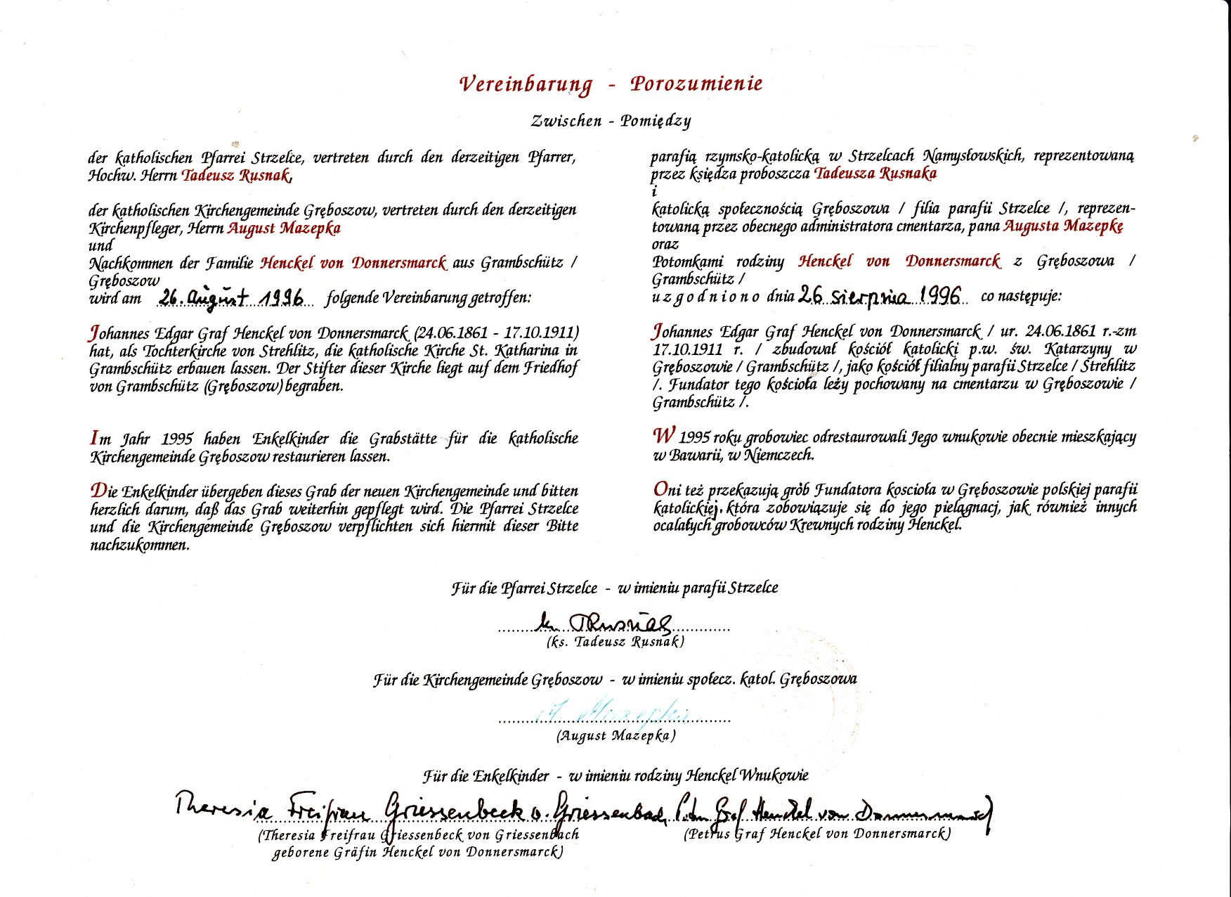 Vereinbarung über die Grabpflege von Johannes Edgar Graf Heckel von Donnersmarck (24.06.1861 - 17.10.1911)