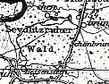 Maßstab 1:25.000 (heute TK 25') . 4 cm = 1 km.