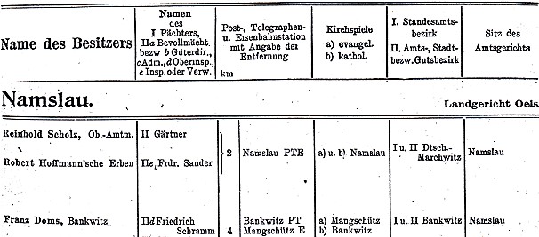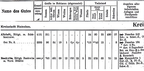 Auszug aus dem "Landwirtschaftlichem Adreßbuch derr Rittergüter, Güter munjd größeren Höfe der Provinz Schlesien" aus dem Jahre 1921