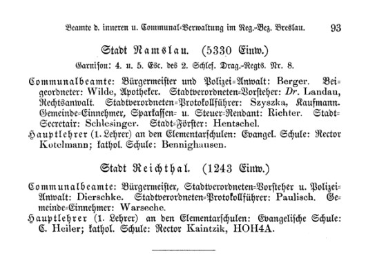 Aus dem Handbuch für die Provinz Schlesien 1876