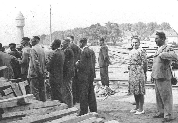 Richtfest Kartoffelfabrik (1939) - links der Wasserturm, rechts Baumeister Kirsch mit Frau