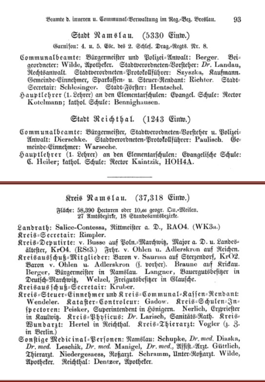Auszug aus dem Adressbuch Kreis Namslau
